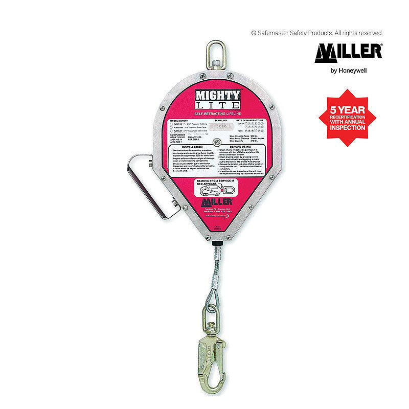 The MILLER MightyLite RL Series Retractable Lifelines are self-contained retractable lifelines designed to be used by personnel in applications where fall protection in combination with unrestricted worker mobility is needed. Heavy-duty performance from a compact and easy-to-use block