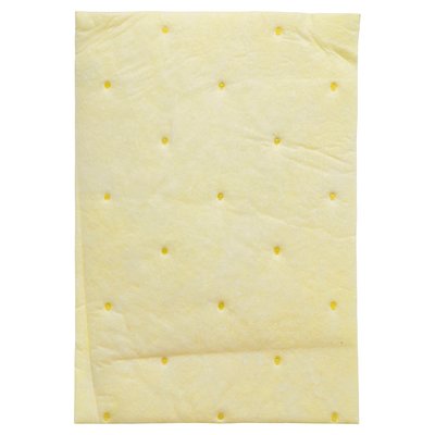 Chemical sorbent pad has a low profile design and can be easily placed in tight areas. Ideal for small spill management and wiping down contaminated areas. Conveniently sized pads allow the user to quickly spread sorbent on and in the path of a spill.