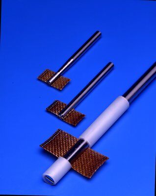 Our 3M Roto Peen Flap Assembly, made with a flap and mandrel, was designed using captive shot-flap technology. To create this unique and portable assembly, we adhered tungsten carbide shot to flexible flaps using high-strength resin. Two flaps are bonded together with a special adhesive for easy placement in a flap mandrel. Peening, a cold working process for metal, applies repeated stress to the material's surface and strengthens it through compression. The peening method helps improve the material's ability to resist fracture, fatigue and stress corrosion cracking. In traditional shot peening methods, the work surface is sprayed with cast steel shot. While this method is also effective, it has a tendency to dirty the operator's environment by releasing debris. Additionally, the tools required for this method limit the spaces where an operator can peen. Our 3M Roto Peen Flap Assembly does not require a sandblaster or the accompanying abrasive materials, as the tungsten carbide shots are already adhered to the flap. The benefits of this unique construction are twofold. First, peening is cleaner because debris is not released as the flaps abrade the surface. The captive shot flaps provide a more precise method than loose shot "blasting." Second, the assembly is portable, making it more convenient for operators to use. Flap/mandrel assemblies are especially effective for precision in-service rework, manufacturing, repair of small areas and peening holes. The 3M Roto Peen Flap Assembly comes in three sizes and allows for peening a variety of surfaces and radii area. Plus, the uniform TC-330 shot size contributes to consistent results. As the part is peened, a compressive residual stress is created. It's a non-yielding layer that increases the material's ability to fight fatigue, stress and fracturing. Flap rotation speed is the most important factor affecting peening intensity. Increasing the speed of rotation increases the intensity. Conversely, decreasing the speed decreases the intensity. To insure uniform peening coverage, operators should use a circular or oscillating motion over the entire area.
