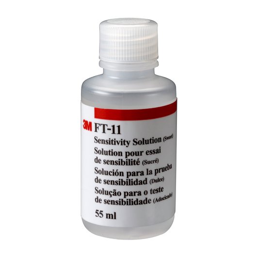 The 3M Sensitivity Solution FT-11 is used to test the sensitivity of the respirator wearer to a saccharin solution. It is used with the 3M Qualitative Fit Test Apparatus Kit FT-10 Sweet.