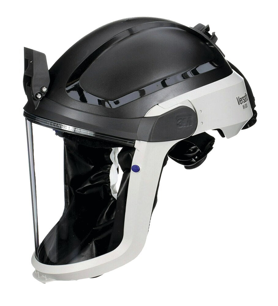 3M Versaflo M-Series helmets offer integrated protection from a range of respiratory, face, and eye hazards. For use in a variety of industries and environments with numerous customization offerings including faceseals, shrouds, visor peel-offs, radiant heat accessories, welding shields and more.