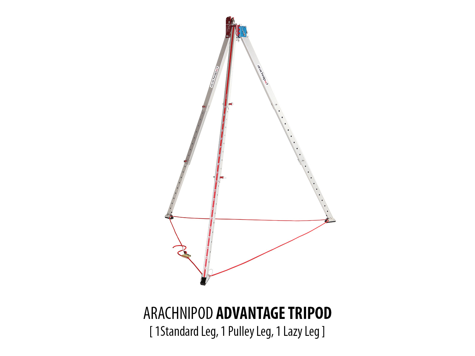 The Arachnipod Advantage Tripod comprises one Standard Leg, a Lazy Leg and a Pulley Leg. The system provides two load attachment points, three stabilisation rigging points, a double-grooved pulley plus the versatility to configure more technical A-Frame systems. The Arachnipod's uniquely designed head system allows the legs to be quickly disconnected from each other to store flat for compact storage and transportation. Each of the legs is supplied with an upgraded Standard Foot 2.