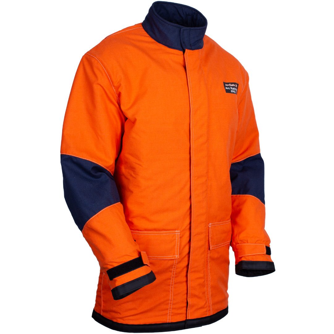 The ArcSafe® X50 Arc Switching Jacket is made from orange etek™ NXT™ and T-Gard® III Plus thermal liner with an ATPV 52 PPE4 (HRC4) and includes Silver FR Reflective trim. This new fabric system is ideal for hot conditions and wicks moisture away from the body improving wearer comfort. The ergonomic design includes an action back, underarm gussets and articulated sleeves for a greater range of movement and improved comfort levels.