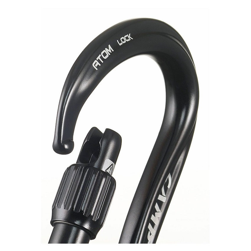 The Atom Lock is a high-strength HMS carabiner designed for belaying and rappelling. The proprietary SphereLock nose combines with a large gate opening to make clipping ropes and webbing easy.