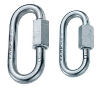 Steel oval quick links for setting up rappels, equipping anchors and fixing draws. Zinc plating helps prevent rust in humid environments. The 8mm requires a 14mm open-end wrench. The 10mm requires a 17mm open-end wrench.