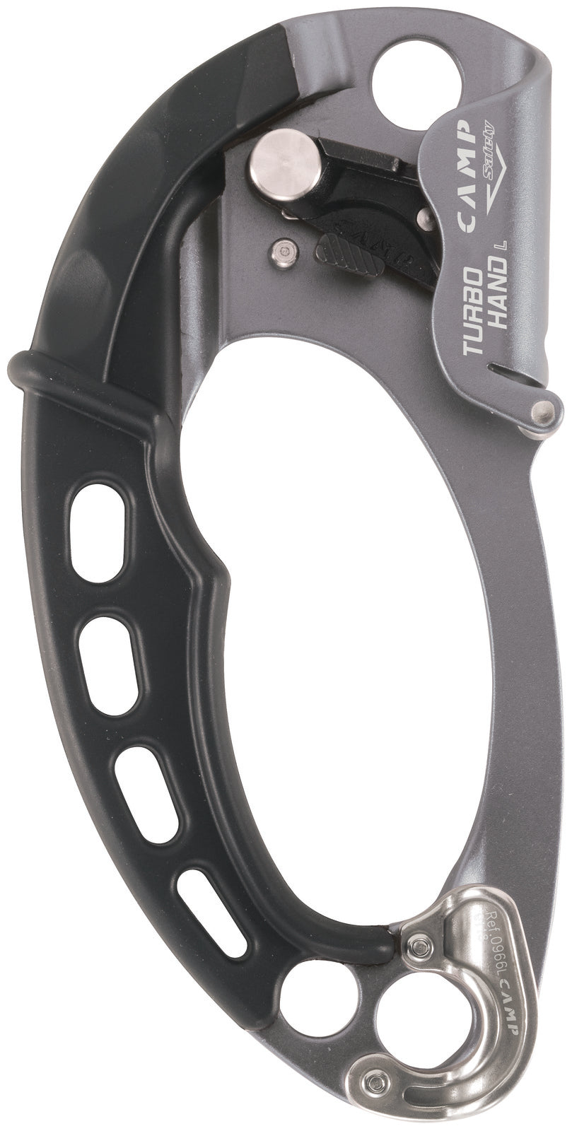 The Turbohand Pro ascender is the absolute top of the line for maximizing efficiency while ascending ropes.It features a proprietary roller. Which not only helps with climbing efficiency by making the upward glide much smoother, it also reducesdangerous wear and tear on the device where the rope tends to rub on the body of a traditional ascender.The removable rope guide at the bottom of the handle optimally aligns the rope for long ascents.The ergonomic rubber handle extends into the upper part of the spine to allow for a double-handed grip.The handle and the rope are aligned on the same plane for the best handling and efficiency.Features three large attachment points, two on the bottom and one at the top, for optimal organization. The stainless steel rope guidereinforces the main attachment point for increased resistance to wear and tear. It also prevents the carabiner from interfering with the rope.The robust body is constructed from 3.5 mm aluminum alloy. The geometry is verified for use on traverses.The toothed cam is finished with a special anti-wear treatment and features drain holes to help prevent the build up of mud and grit.The opening system is protected on both sides to prevent accidental openings.The proprietary roller also allows the Turbohand to be rigged as a locking pulley for light hauling with a max load of 50 kg, 110 lbs.NOTE: This configuration is not intended for hauling or securing of bodies.Standards:- EN 12841/B for semi-static ropes ranging from 10 to 13 mm.- EN 567 for semi-static and dynamic ropes ranging from 8 to 13 mm.Specifications:- Weight: 198g- Rope diameter: 8mm - 13mm