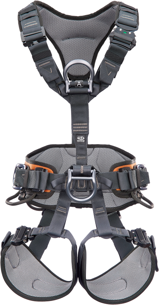 The Gryphon Harness is specifically designed for rope access work. With its close-fitting construction and wide lumbar support belt with breathable mesh padding, it offers optimum comfort during prolonged suspensions. Its contoured shoulder straps with shape optimized avoid friction on the user's neck. The shoulder straps and leg loops also have quick-release buckles, so that they can be put on and taken off quickly. Due to the targeted panel construction of the leg loops, pressure on the groin area is reduced. The Gryphon also has a large sternal attachment point according to EN 361, which facilitates rescue operations. It has lateral attachment points certified to EN 358 and dorsal attachment points certified to EN 361, which do not hamper the operator's movements and are also suitable for working in confined spaces. The harness has a maximum load of 140 kg and two dedicated loops for the connection of a work-positioning seat.