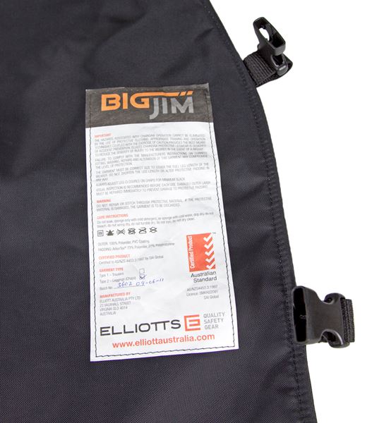 Big Jim® chainsaw protective clothing is certified to AS/NZS 4453.3 Protective clothing for users of hand-held chainsaws - Protective legwear by SAI Global.