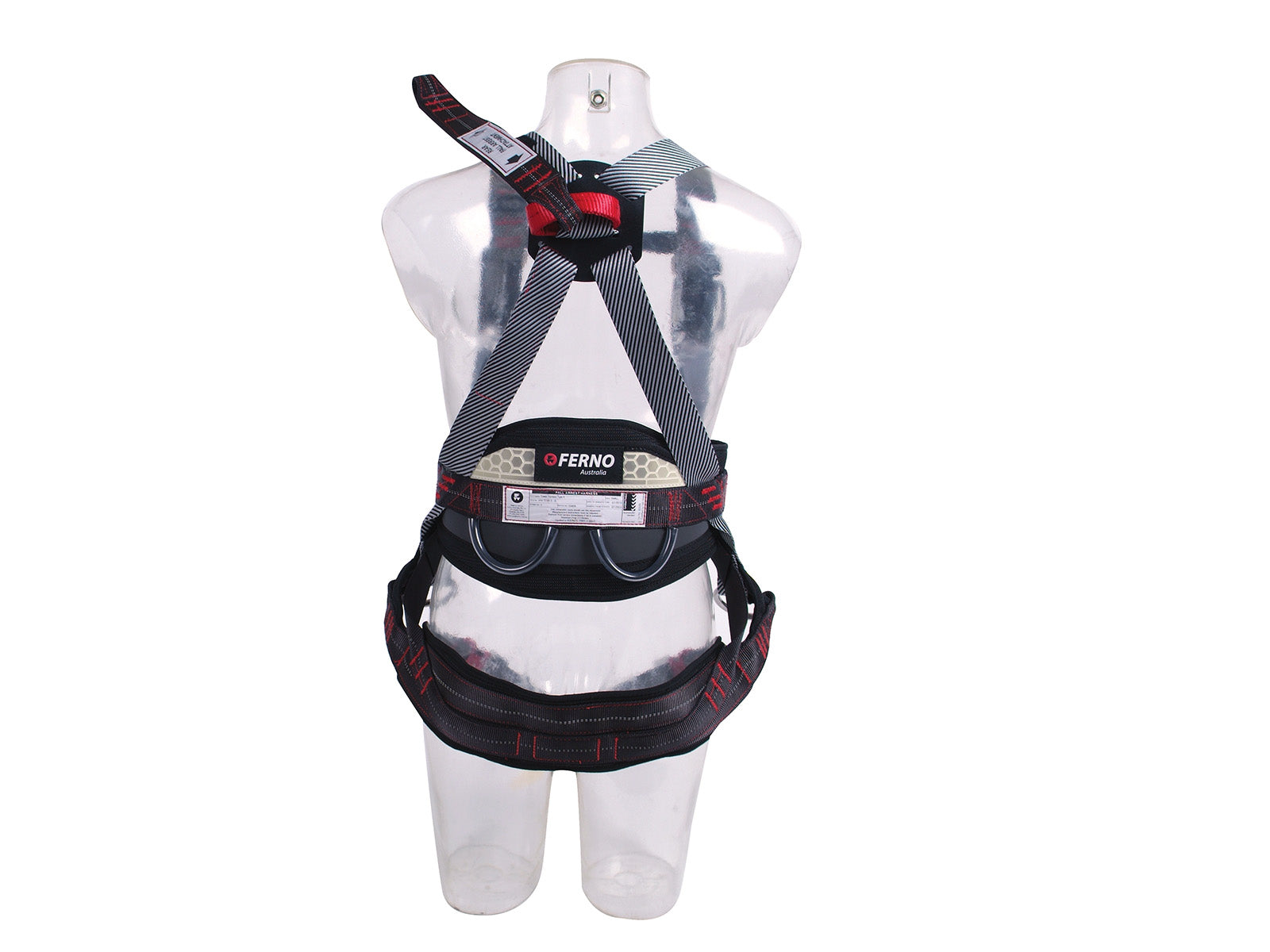 The safety harness features an exceptionally comfortable seat with lumbar support that prevents user back strain and fatigue by positioning the user in an upright posture and eliminating any 'tip back' sensation.Padded, breathable lumbar and leg padding provides paramount support and comfort while keeping the user cool and dry. Reflective and glow in the dark materials improve night time visibility and safety for the wearer.The Ferno Tower 5 harness features neoprene buckle sleeves for non-conductivity from the waist up, rear gear loops for tool and equipment attachment and all stainless steel componentry for additional safety.