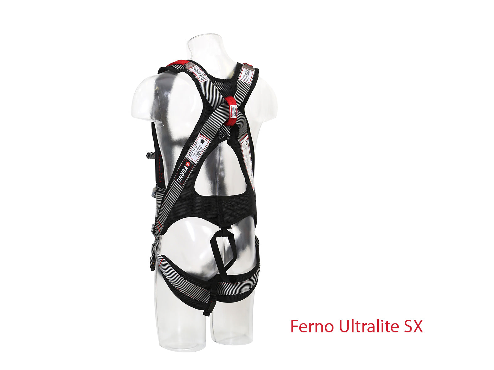 The improved Ferno Ultralite SX full body harness is designed and manufactured in Australia and combines world-leading safety features with superior comfort and easy vest style donning. Design improvements to this light-weight fall arrest harness includes slimmer shoulder padding and a more sculptured and supportive back. This safety harness is constructed with pliable, moisture-wicking mesh that provides the wearer with unrestricted flexibiity and comfort during low and high risk work conditions. Its innovative cross-style design, evenly distributes the forces exerted in the event of a fall through the harness to dissipate damaging impact shock and protects the user from internal injuries.For confined space entry and work at heights restraint, tie into the Ultralite's front attachments points, adjust the leg straps and sit into the harness for additional comfort and support as well as reducing the chances of suspension trauma. The harness adjusts to fit a large range of body shapes. This feature combined with the flexible and unrestrictive frontal straps makes the Ultralite X a favourite for females.The Ultralite X feaures all alloy componentry with oil, grease and water repellent webbing. The harness' reflective properties provide pronounced visibility and safety when working in darkness. Non-metallic front and rear free fall arrest attachment points have contributed to the overall impressive weight of 1.29 kg - a significant weight saving that reduces fatigue on the wearer.