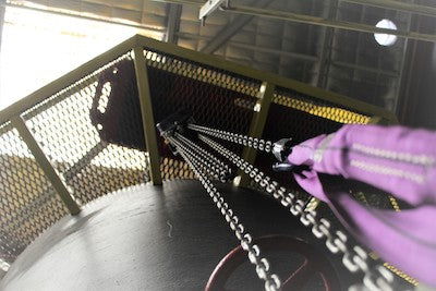 Although originally designed for fall protection, the Gridmesh Anchor can also be used as a lifting point for hauling materials by ordering a different model number GA03. The device has been third-party tested to perform as a mobile crane device in accordance with AS1418 up to a maximum load of 1.2 tonnes**. The sling supplied with this model is also certified to AS1666 and carries a 1.2T W.L.L.