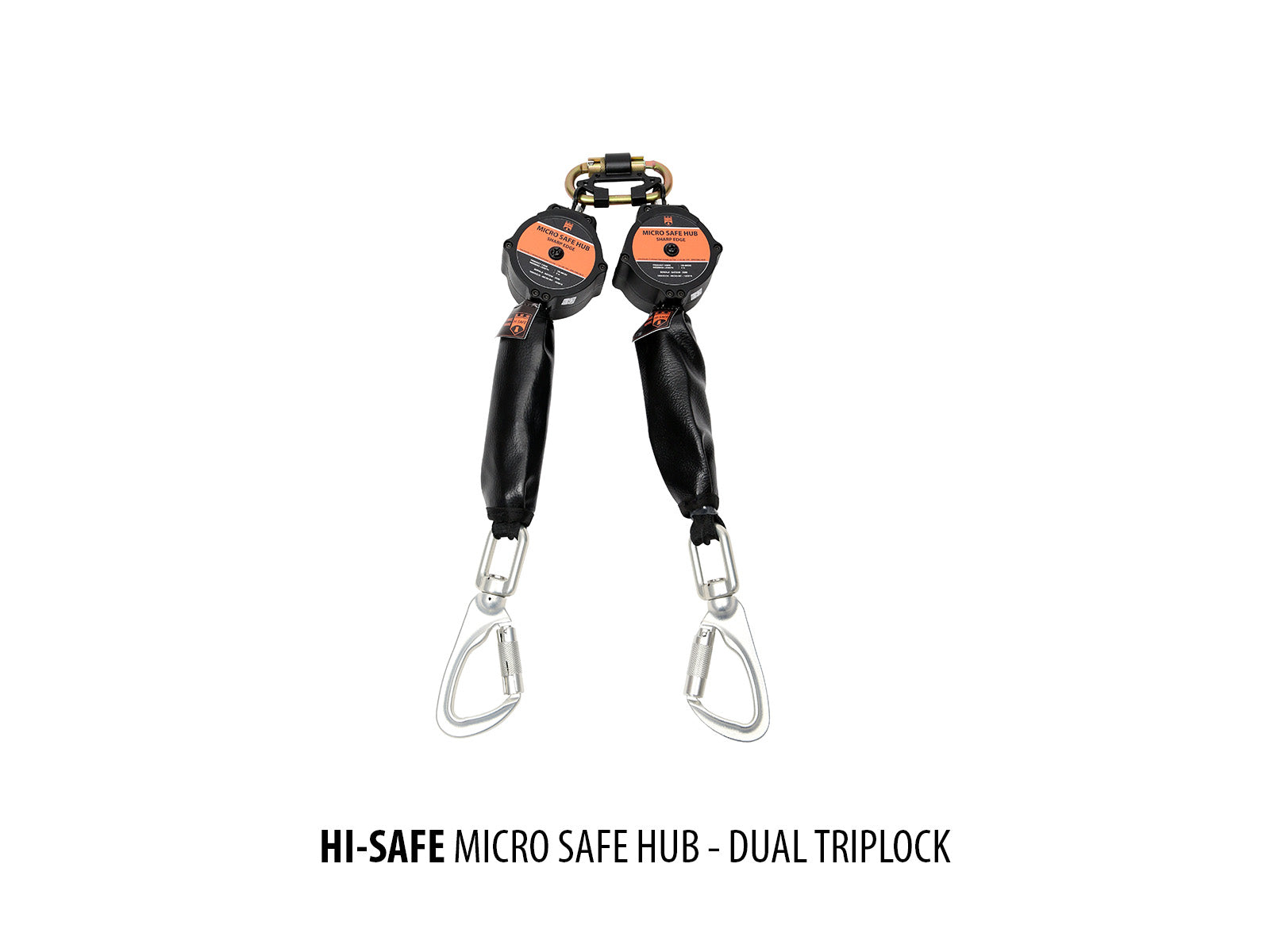 The Hi-Safe Micro Safe Hub is palm-sized fall arrest block that can be used as a lanyard replacement. This light, compact fall block is rated for sharp-edge use with fall factor two certification and deploys one of the quickest and shortest lock-on speeds in its class.A simple SRL Connector system allows two Hi-Safe Micro Safe Hubs to link together to create a dual or twin-tail device. Both devices work independently and can be disconnected if required.