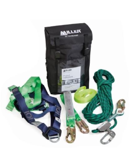The Miller Roof Workers kit has been designed to allow workers in situations where roof work is required, and easy all in one kit, that packs neatly and easily into a sports bag for transportation and moving from site to site.