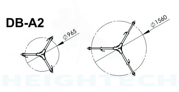 Maximum user rating 2 persons or 1 person and a load winch to 250 Kg SWL. The rescue tripod is adjustable in height from 1.44 to 2.42 m. The set up diameter of the legs ranges from 0.99 to 1.55 m.