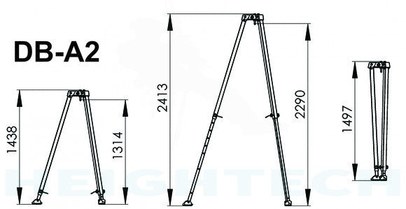 The rescue tripod is adjustable in height from 1.44 to 2.42 m.