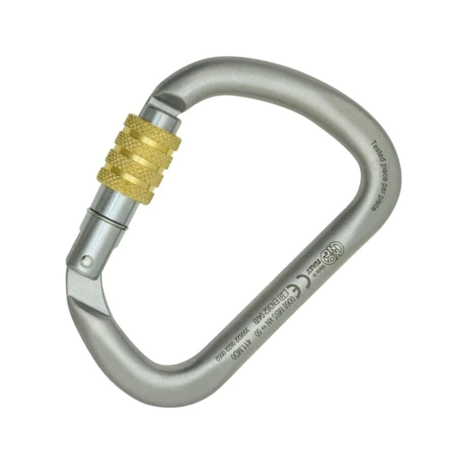 The KONG Large Steel Screwgate Carabiner is designed with a wide gate opening and high tensile strength. The D shape prevents the rotation of the carabiner and allows to distribute the load along the major axis. The KONG Large Steel Screwgate Carabiner comes in a variety of colours and locking styles. Ideal for rope access, rescue or any other uses where a heavy duty rigging carabiner is desirable.