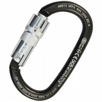 Oval carabiner carbon steel, wide-opening. High load of 40 KN. perfect for heavy duty applications and for connection to structural anchors, lifelines, etc.