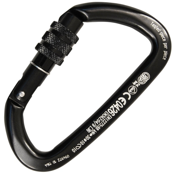 Aluminum carabiner light and high load, with screw sleeve and Keylock system. The D shape transfers the majority of the load on the main axis of the carabiner, which is the most resistant. The asymmetric shape is also ideal for belay systems. The screw sleeve allows to have a safer closing of the gate, and also makes it suitable for professional use. Usefull for use during bolt belay.Key Features:- Heavy load- Keylock System- High quality product completely developed and manufactured in Italy- Tested piece by piece
