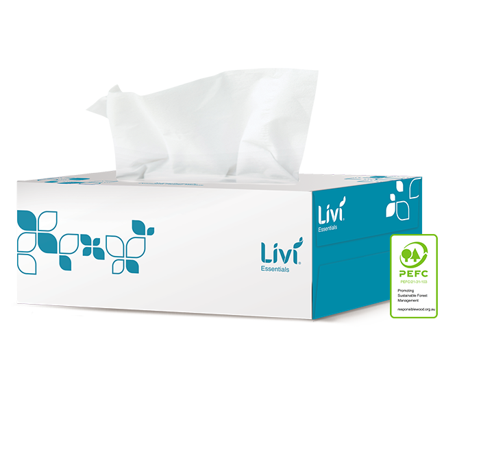 A Modern addition to your workplace. The Livi Essentials 2 Ply facial tissue delivers a premium soft touch. The facial issues are made from virgin pulp and are hypoallergenic for sensitive skin. Each box contains 200 sheets per pack.