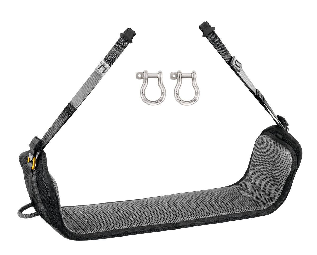 The PODIUM provides optimal comfort during prolonged suspension. The wide sitting position offers excellent stability. Rigid sides prevent the webbing straps from cutting into the thighs. The easy-to-use seat has two equipment loops and a rear hook, making it easier to store in order to facilitate movement.