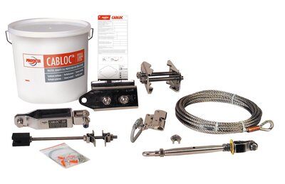 Cabloc™ Vertical Cable System kit is a complete vertical lifeline solution in kit form that provides safe access on fixed ladders tower heads, poles, lighting towers, chimmneys and many other structures. The kit contains 10m of 8mm Stainless Steel Cable 7 by 19 with one end looped and crimped, cable clamps, universal top and bottom brackets (AC340), inline energy absorber (AC325), tensioner (AC330) and traveller AC350