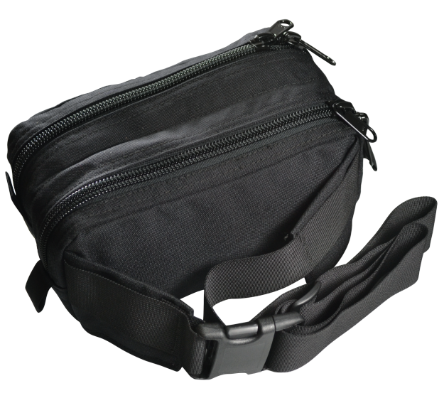 The standard AZTEK Bag is a specially designed hip-pack with two compartments to accommodate the simultaneous use and storage of the mechanical advantage pulley set on one end (system end), and the edge restraint on the other.