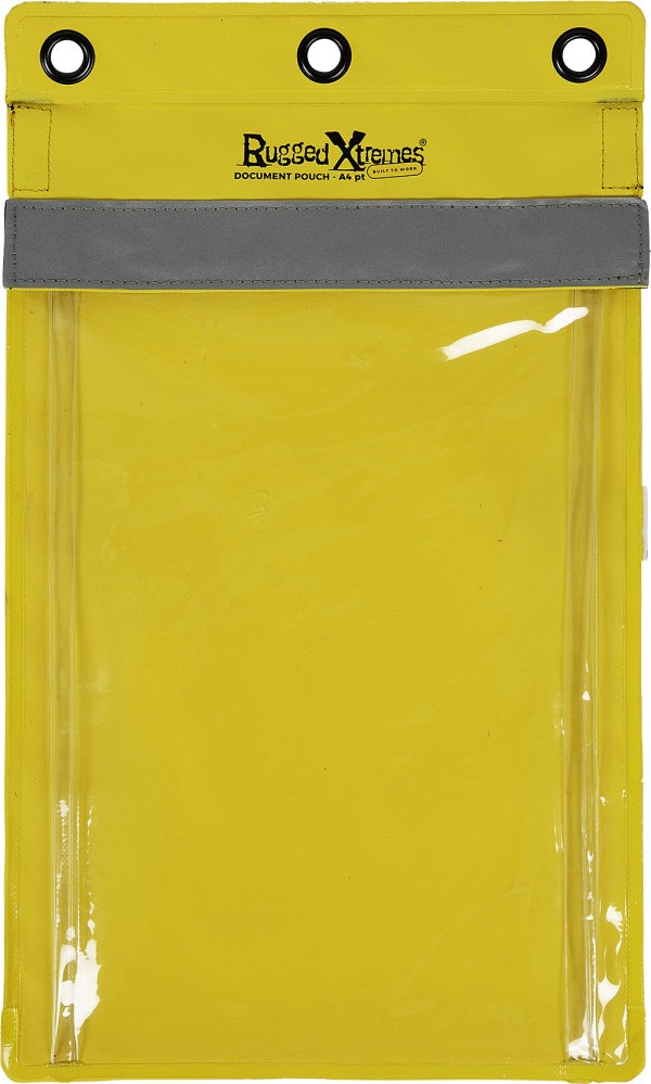 Overview Introduce a new level of organisation and durability to your work environment with the Rugged Xtremes Document Pouch. Designed for professionals who demand both resilience and efficiency, this document holder is your ultimate companion for keeping important papers secure and accessible. Durability Meets Functionality The pouch is built to withstand the rigors of any work site while ensuring your documents remain intact and within reach. Heavy-Duty Construction: Made with PVC tarpaulin, the pouch is designed for ultimate durability, capable of resisting tears, punctures, and water, ensuring your documents are protected under all conditions. Weather-Resistant Design: Whether you're working under the scorching sun or in rainy conditions, the weather-resistant feature of this pouch keeps your documents safe from the elements. Convenient Accessibility: A clear, UV-stabilized PVC front panel allows for easy visibility and quick access to documents without having to open the pouch, saving time and hassle in critical moments. Organisational Efficiency for Professionals Tailored to the needs of those in demanding industries, efficiency, and ease of use in any work setting. Easy to Carry: A sturdy, adjustable shoulder strap and durable handle provide multiple carrying options, making it easy to transport documents across job sites. Quick-Access Design: The secure zip closure ensures your documents are safe yet easily retrievable, offering convenience and peace of mind. High Visibility for Safety: The bright, reflective tape on the front enhances visibility, making it an ideal choice for use in low-light conditions, promoting safety on site. Label Slot for Identification: A personal identification label slot on the back allows for easy marking, ensuring your pouch is easily identifiable among other equipment. Adaptability Across Environments The Rugged Xtremes Document Pouch ensures that your documents are always protected and organized whether you're on a construction site, in a workshop, or conducting field research. Multi-Industry Use: From construction, mining, and energy sectors to outdoor adventures and academic fieldwork, this pouch adapts to your needs, ensuring documents and plans are always close at hand and in pristine condition. Durable in Harsh Conditions: Engineered to endure tough environments, its construction is resistant to abrasions, punctures, and weather, standing up to the challenges of daily use in demanding conditions. Flexible Organisation: The internal and external pockets, along with specialized slots for pens and accessories, offer customizable organisation, catering to the specific needs of professionals across various industries. Specifications and Certifications Material: Tough weatherproof 640gsm PVC Construction: Fully welded seams to avoid leakage, no stitching Expandable: Gusseted design to accommodate bulky clipboards or booklets Closure: Velcro flap with side tabs for a secure seal Hanging options: Eyelets for easy hanging or attaching to machinery Front cover: Heavy-duty UV stable, clear PVC Durability: Heavy-duty 1000d PVC construction Reflective strip on the flap for visibility A Must-Have for Every Professional For professionals who value efficiency, durability, and organisation, the Rugged Xtremes Document Pouch is an indispensable tool. It brings together the essential features required for keeping important documents safe, accessible, and organised, no matter where your work takes you. With its robust construction, thoughtful design, and versatile storage options, this document pouch is tailored to meet the demands of a wide range of professional environments, ensuring you stay prepared and productive.