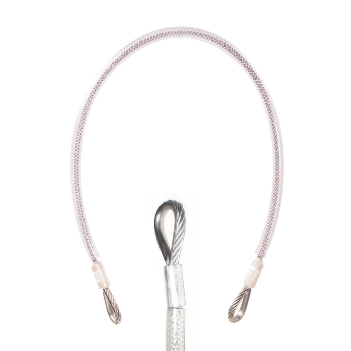 Lyon 7mm Galvanised Steel Wire Anchor Sling Strop 7mm Galvanised wire anchor sling strop with eyelet ends and plastic protective sleeve. Important Note: These are EN795 PPE Anchor Strops NOT EN13414 lifting slings. Size: 0.5m Conformity: EN795B Breaking Load: 25kN FAQs: Q: What is the size of the eyelet? A: The eyelets are tear dropped shaped: Approx. 4cm long, 2cm wide (sufficiently large enough to be able to rotate a standard size screwgate karabiner though) Q: How strong are the wire slings? A: The Breaking Load is 25kN Q: Materials used to manufacture? A: Galvanised steel wire with aluminium alloy ferrules and stainless steel thimbles.