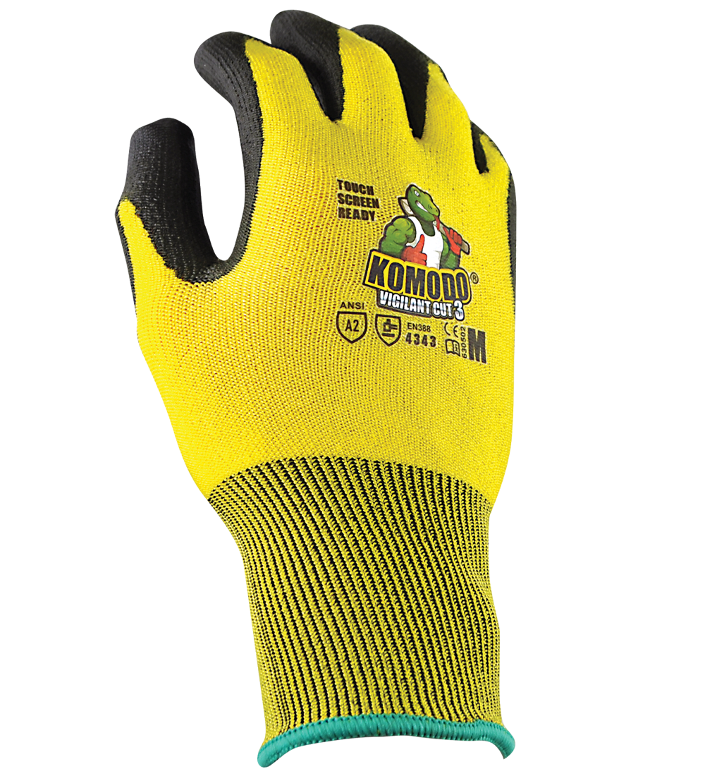 The Best Multi-Purpose KOMODO Vigilant Glove. KOMODO Man's Vigilant Cut 3 Glove is the glove you need for moderate risk activities, such as Light Metal Stamping, Light Duty Glass Handling, Construction Work and Packaging Applications.
